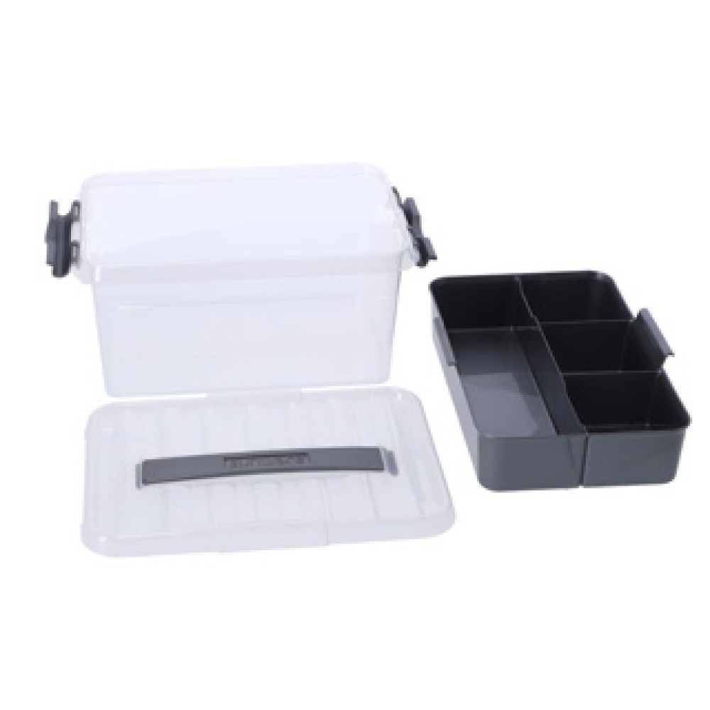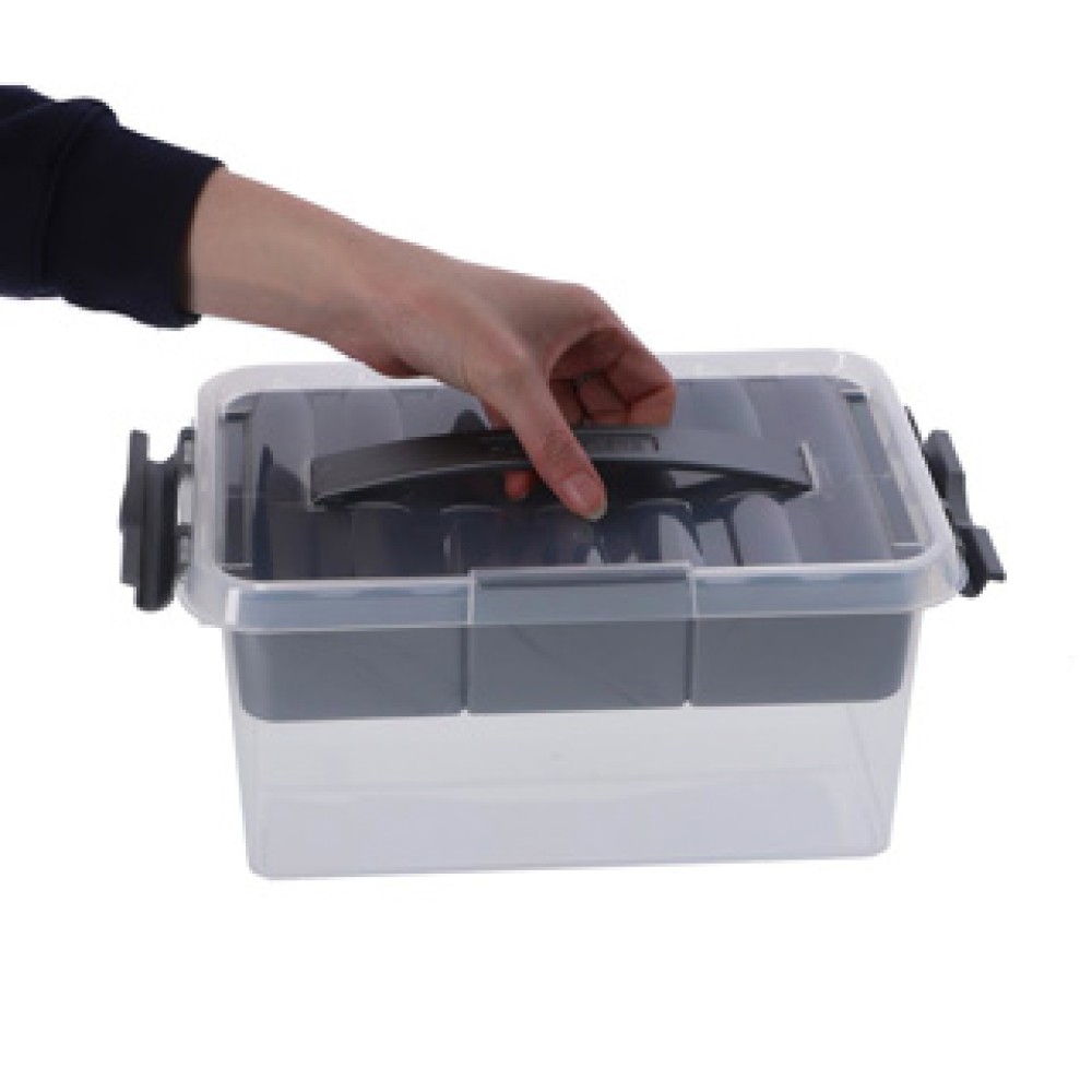 Met de speciale inzetten in het deksel kun je kleine voorwerpen overzichtelijk opbergen. Deze feature maakt de box ideaal voor verschillende toepassingen, zoals knutselen of het opbergen van kantoorbenodigdheden.