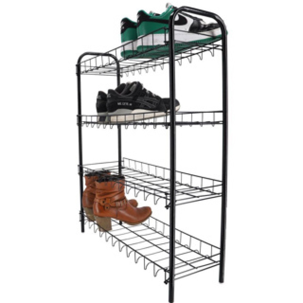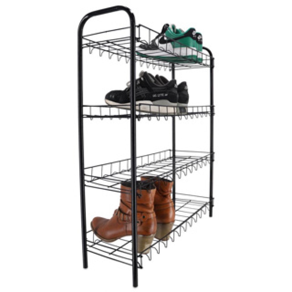 Organiseer uw schoenen gemakkelijk en stijlvol met het Tomado Schoenenrek! Dit 4-laagse rek heeft een afmeting van 64x23x80,5 cm en biedt ruimte aan meerdere paren schoenen. Het rek heeft een modern zwart ontwerp dat past in elk interieur en is gemaakt van hoogwaardig metaal, waardoor het stevig en duurzaam is. Het schoenenrek is gemakkelijk te monteren en kan zowel binnen als buiten worden gebruikt. Gebruik dit handige en praktische schoenenrek om uw schoenen netjes op te bergen en uw huis opgeruimd te houden!
