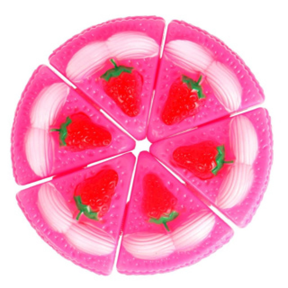 - Zes stukken speelgoed aardbeien slagroomtaart