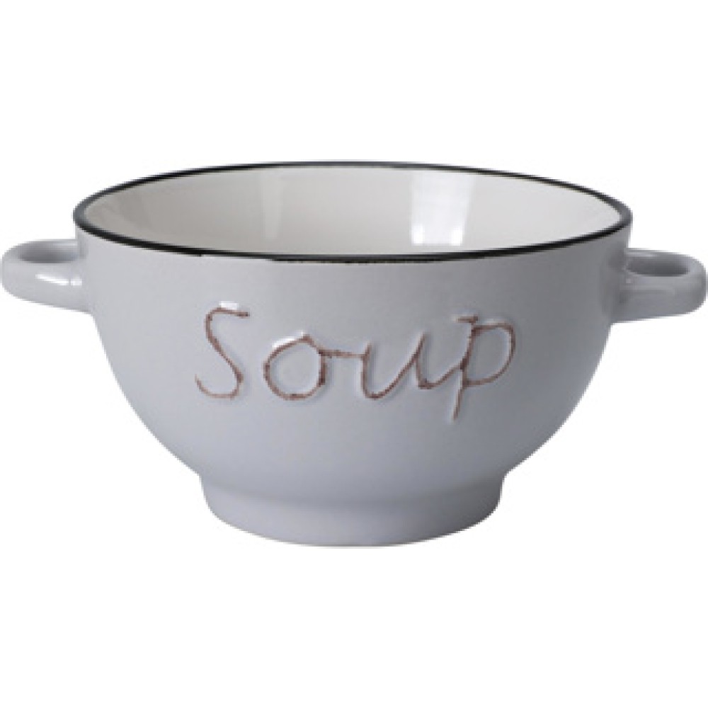 Ontdek de charmante soepkom met handvatten, perfect voor het serveren van je favoriete soepen. Gemaakt van hoogwaardig aardewerk, biedt deze kom niet alleen functionaliteit, maar ook een stijlvol accent aan je tafel. De ergonomische handvatten zorgen voor een comfortabele grip, zodat je eenvoudig kunt genieten van je maaltijd. Met het speelse woord "Soup" op de zijkant, voegt deze kom een vleugje flair toe aan elke eetgelegenheid. Ideaal voor ons dagelijkse gebruik of speciale momenten met vrienden en familie. Maak van elke soepmaaltijd een feestje met deze aantrekkelijke soepkom!