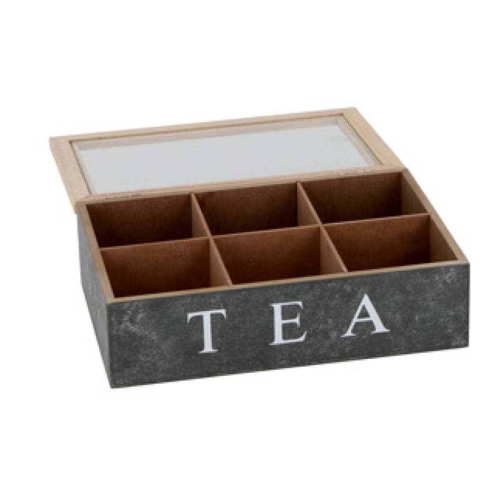 - Houten rand met een opvallende “TEA”-opdruk