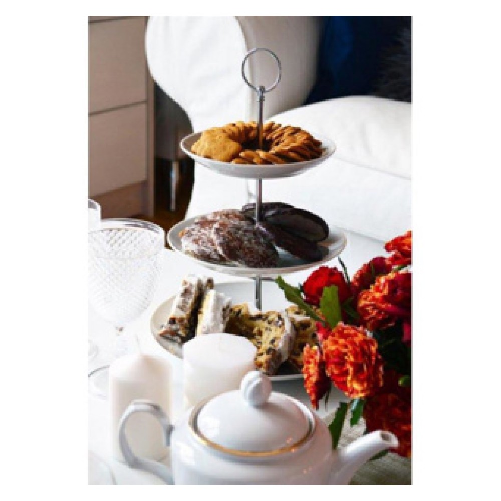 Door het witte porselein heeft deze serveertoren een elegante uitstraling. Je kunt de etagere eenvoudig combineren met diverse tafelinstellingen en decoraties.