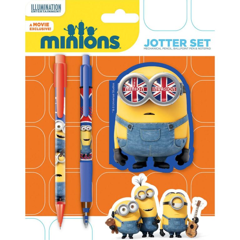 Deze set bestaat uit een rode en een blauwe pen de voorzien zijn van leuke Minion afbeeldingen. Tevens zit er een handig klein notitieboekje bij zo kun je nooit meer wat vergeten! Minion pennenset inhoud: - 1 Blauwe Minion balpen - 1 Rode Minion balpen - 1 Klein notitieblokjeEAN: 5051265719379