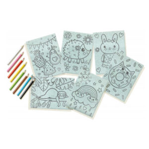 Hobbyset SES Glitterkaarten kleuren Maak schitterende kunstwerkjes met SES Glitterkaarten inkleuren! Met deze leuke set maak je supermakkelijk de mooiste glitterkaarten! Deze speciale kaarten hebben al glitters en je hoeft er alleen maar met je potlood overheen te kleuren. Zo krijg je een kleurrijk en glinsterend eindresultaat! Kleur de figuurtjes als een konijntje, fruit en een regenboog mooi in zoals je dat zelf wilt. Als je klaar bent, kan je de kaarten voorzichtig loshalen en opplakken als sticker. Hang ze bijvoorbeeld boven je bed, zodat je er superlang van kan genieten! Inhoud: