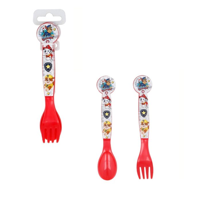 Paw Patrol lepel en vork Deze schattige Paw Patrol set bestaat uit een lepel en een vork. Leuk en veilig om mee te leren eten door de decoratie en de afgeronde vormen. Eten wordt een stuk leuker met deze bestekset. Wanneer het gecombineerd wordt met Paw Patrol servies, wordt eten helemaal een feest. Materiaal: kunststof