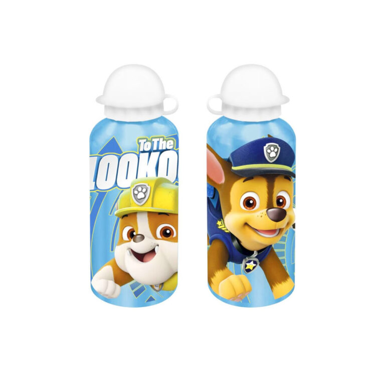 Paw Patrol lichtblauwe drinkfles met fraaie afbeelding van jouw vriendjes Rubble, Marshall en Chase van Paw Patrol. De kunststof schroefdop is makkelijk verwijderbaar zodat vullen en schoonmaken een fluitje van een cent wordt. Het drinktuitje is uittrekbaar en wordt beschermd door een extra dop, zodat de fles lekvrij is. Materiaal: aluminium + BPA-vrije kunststof.