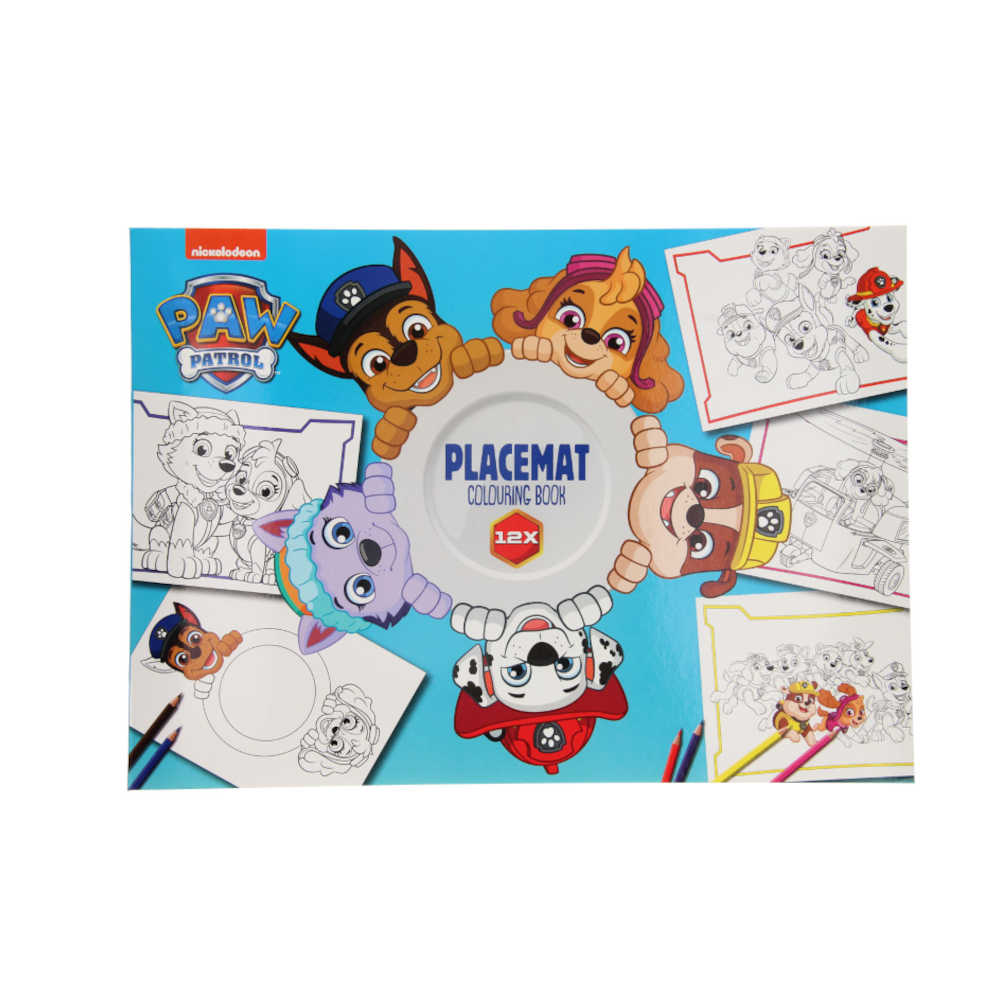 Paw Patrol Kleurplaten Ben jij ook zo dol op Paw Patrol? Je kunt nu je eigen placemats maken, met Paw Patrol thema! Op elk van de 12 placemats/onderleggers staat een afbeelding van jouw Paw Patrol helden. De kleurplaten hebben een groot formaat van 42 x 30 cm.