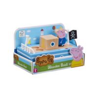 Peppa Pig houten boot Maak van de woonkamer een robuuste zee en ga op avontuur met George en zijn robuuste houten piratenschip. Inclusief George figuurtje met drop-and-play voeten, die je gemakkelijk op 1 van de 3 speciale plekken kunt plaatsen.