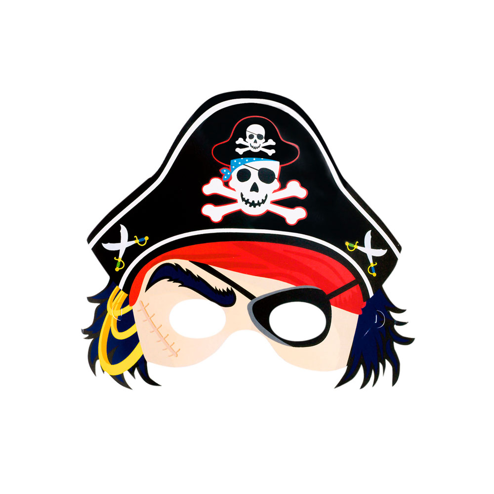 Piratenmaskers ( 6 stuks ) Ideaal voor kinderfeestjes! Deze piraten maskers zijn gemaakt van soepel en dun karton en zijn gemakkelijk te bevestigen dankzij een elastiekje. Deze leuke piraten maskers zijn een leuke aanvulling voor een piraten outfit. Inhoud 6 stuks