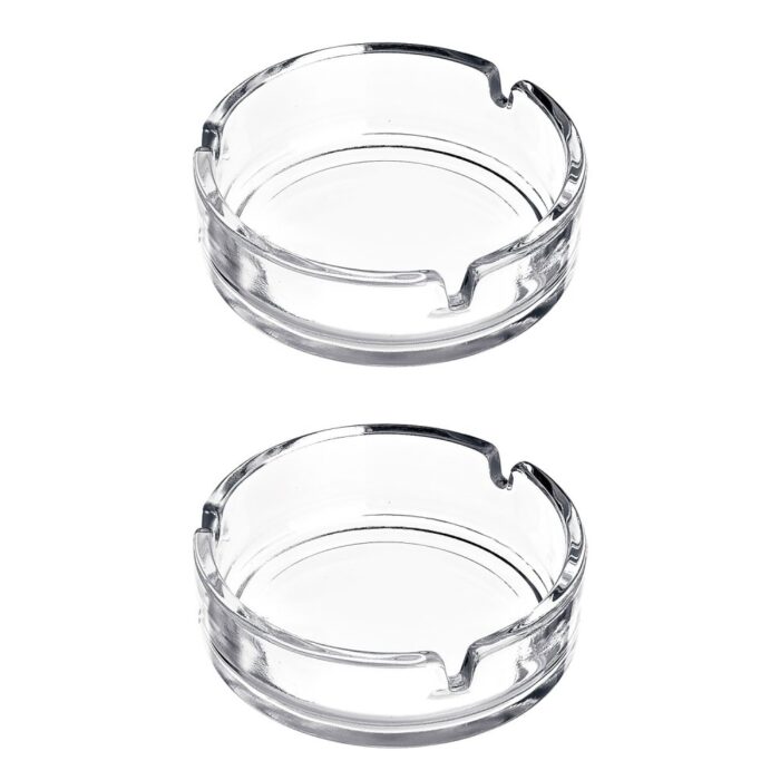 2 glazen asbakken met een diameter van 10,5 cm. Klassieke uitstraling.