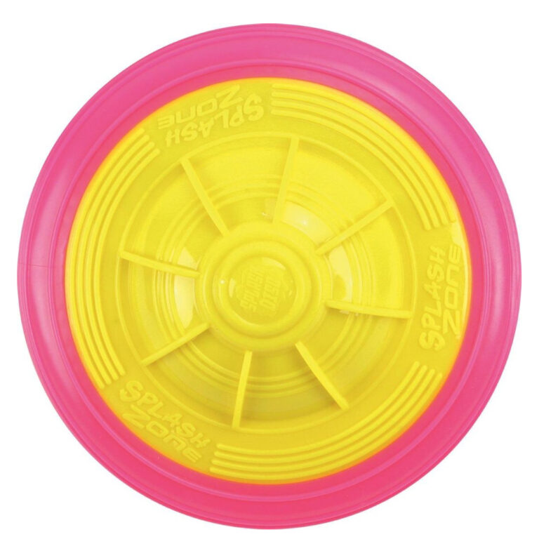 Combineer waterpret met frisbeeën. Vul de frisbee met water en gooi vervolgens naar elkaar over. Wie wordt er nat en wie blijft er droog? Verkrijgbaar in een geel/roze en geel/groene uitvoering. Welke uitvoering je ontvangt is willekeurig.