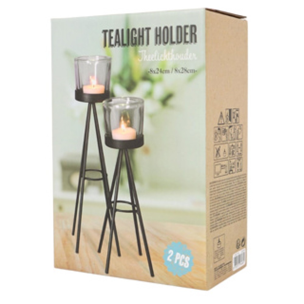 Theelichthouder Zwart 28cm Set van 2