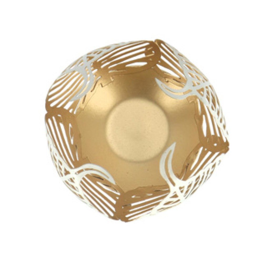 Breng een vleugje elegantie in uw interieur met de Theelichthouder op voet Leaf Lina in een prachtige crème en goud combinatie. Deze smaakvolle houder, vervaardigd uit metaal, is versierd met een prachtig bladmotief dat een warme en gezellige sfeer creëert. Perfect voor het veilig plaatsen van theelichten, voegt dit unieke stuk niet alleen functionaliteit toe, maar ook een stijlvolle uitstraling aan elke ruimte. Laat het zachte licht stralen door het gedetailleerde ontwerp en geniet van een serene ambiance in uw huis.
