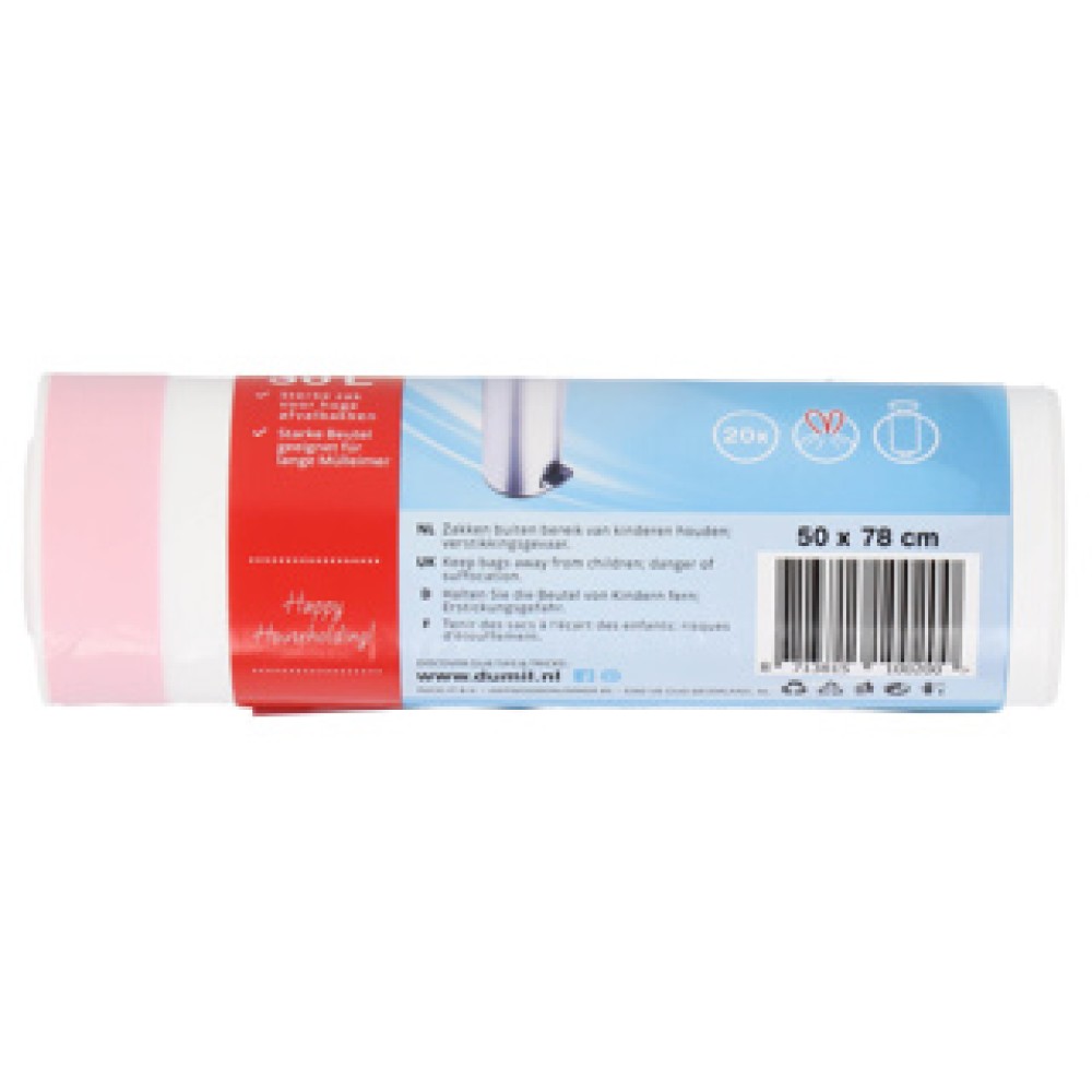 De Dumil Afvalzakken met Trekband zijn de perfecte oplossing voor je afvalbeheer. Deze sterke zakken zijn speciaal ontworpen voor hoge afvalbakken en bieden een praktische manier om afval efficiënt te verzamelen en te verwijderen. Elke zak is voorzien van een handige trekband, waardoor afsluiten een fluitje van een cent is. Met deze veelzijdige rol van zakken ben je verzekerd van duurzaamheid en gebruiksgemak, waardoor je schoonmaakroutine zowel eenvoudiger als hygiënischer wordt. Ideaal voor thuis of op kantoor, maak je afvalverwerking moeiteloos en georganiseerd!
