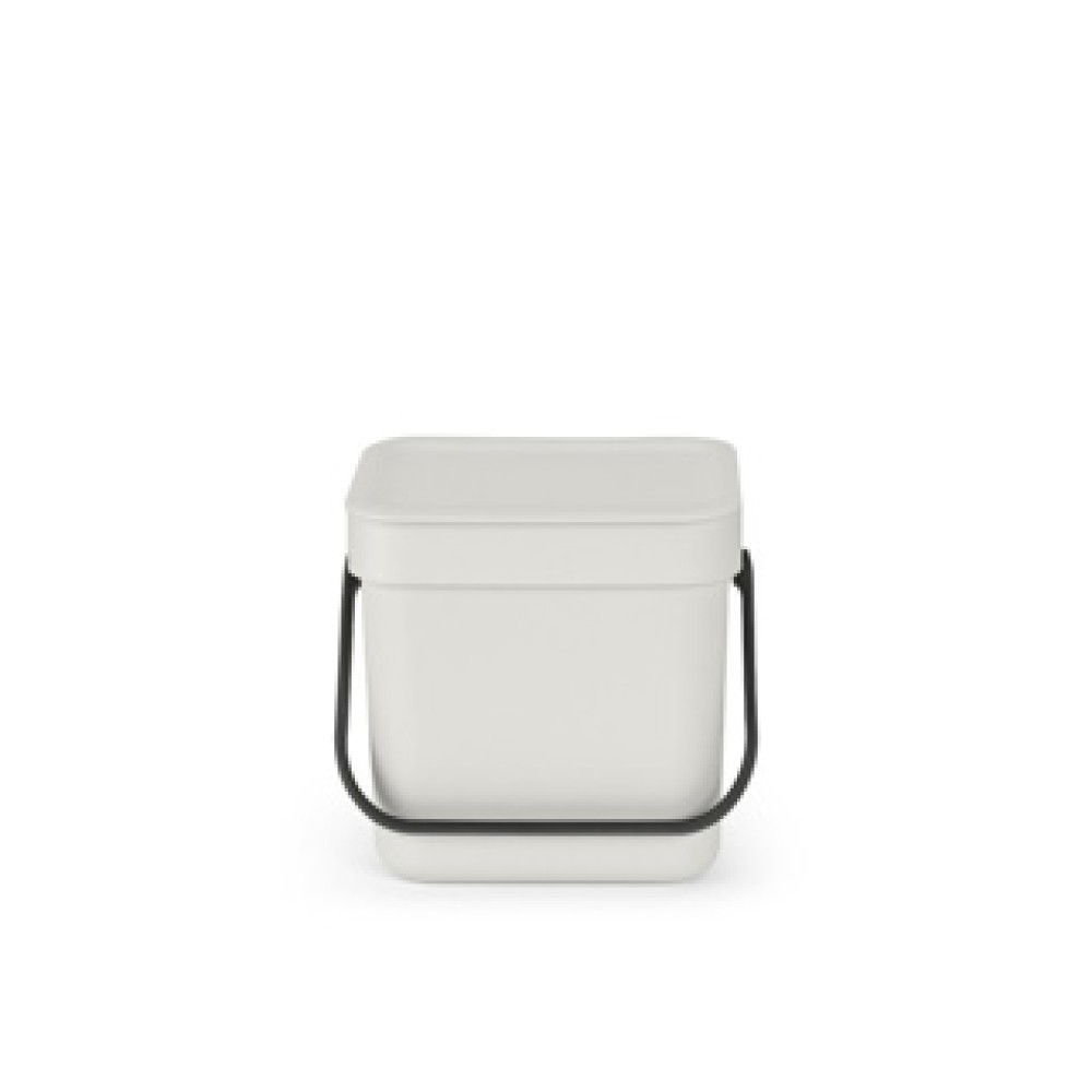 Brabantia Sort & Go afvalbakje 3 liter Light Grey. Ruimtebesparend – XXS volume, past overal (3L). Kan overal – op het aanrecht, in de la of aan de muur (beugel apart verkrijgbaar). Altijd klaar voor actie – deksel kan open blijven staan. Snel legen – handig hengsel en bodemgreep. Makkelijk met de hand schoon te maken – gemaakt van kunststof, geen hoekjes en randjes. Zak uit beeld – bovenrand verbergt afvalzak als het deksel dicht is. Perfecte combi – bijpassende Brabantia PerfectFit afvalzakken verkrijgbaar (code A). Probleemloos gebruik – 10 jaar garantie en service. Milieuvriendelijk – Cradle-to-Cradle®-gecertificeerd, niveau zilver. Duurzamere keuze – 100% recyclebaar na gebruik.