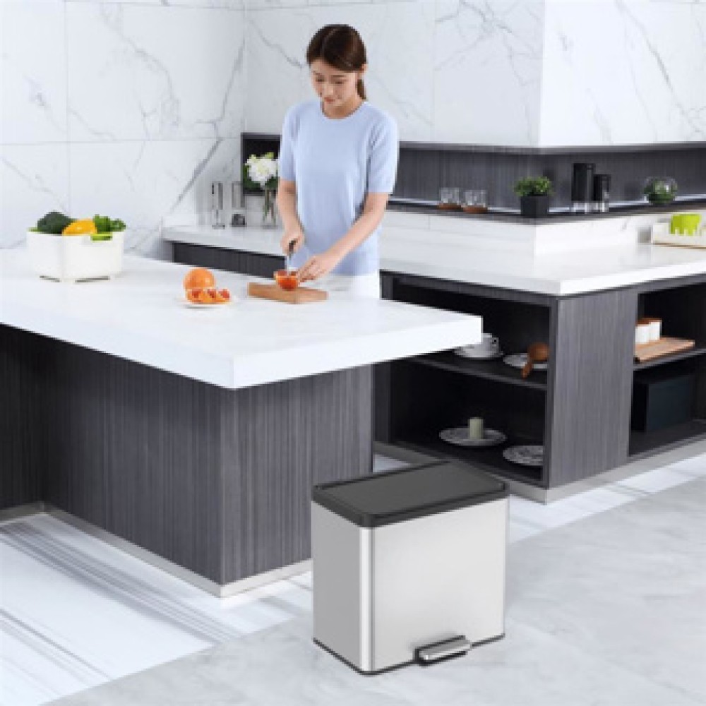Ontdek de EKO Essential Recycling pedaalemmer! Deze handige afvalbak is perfect voor het scheiden van je afval. Met een totale inhoud van 30 liter, verdeeld over twee 15-liter binnenemmers, wordt recyclen eenvoudig en efficiënt. Het moderne ontwerp in mat RVS past mooi in elke keuken.