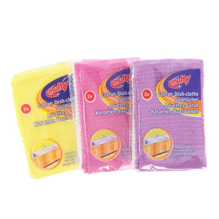 Ontdek de Multy katoenen vaatdoeken, perfect voor al uw huishoudelijke taken. Deze krachtige doeken zijn gemaakt van hoogwaardig katoen, wat ze sterk en duurzaam maakt. Een verpakking bevat twee doeken, zodat u altijd een schoon exemplaar bij de hand heeft voor het afvegen van oppervlakken of het drogen van uw servies.
