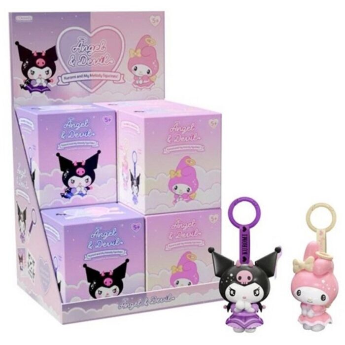 Ontdek de schattige My Melody & Kuromi angel/devil hanger in een verrassende blindbox. Elke box biedt een unieke hangers, geïnspireerd door de geliefde Sanrio-personages. Deze adorabele hangers zijn perfect om je tassen, sleutels of andere persoonlijke items een speelse touch te geven. Verzamel ze allemaal en geniet van de verrassing bij elke openening. Ideaal voor fans van Sanrio of voor wie op zoek is naar een vrolijke decoratie. Breng een sprankje magie in je dagelijkse leven met deze betoverende hangers!