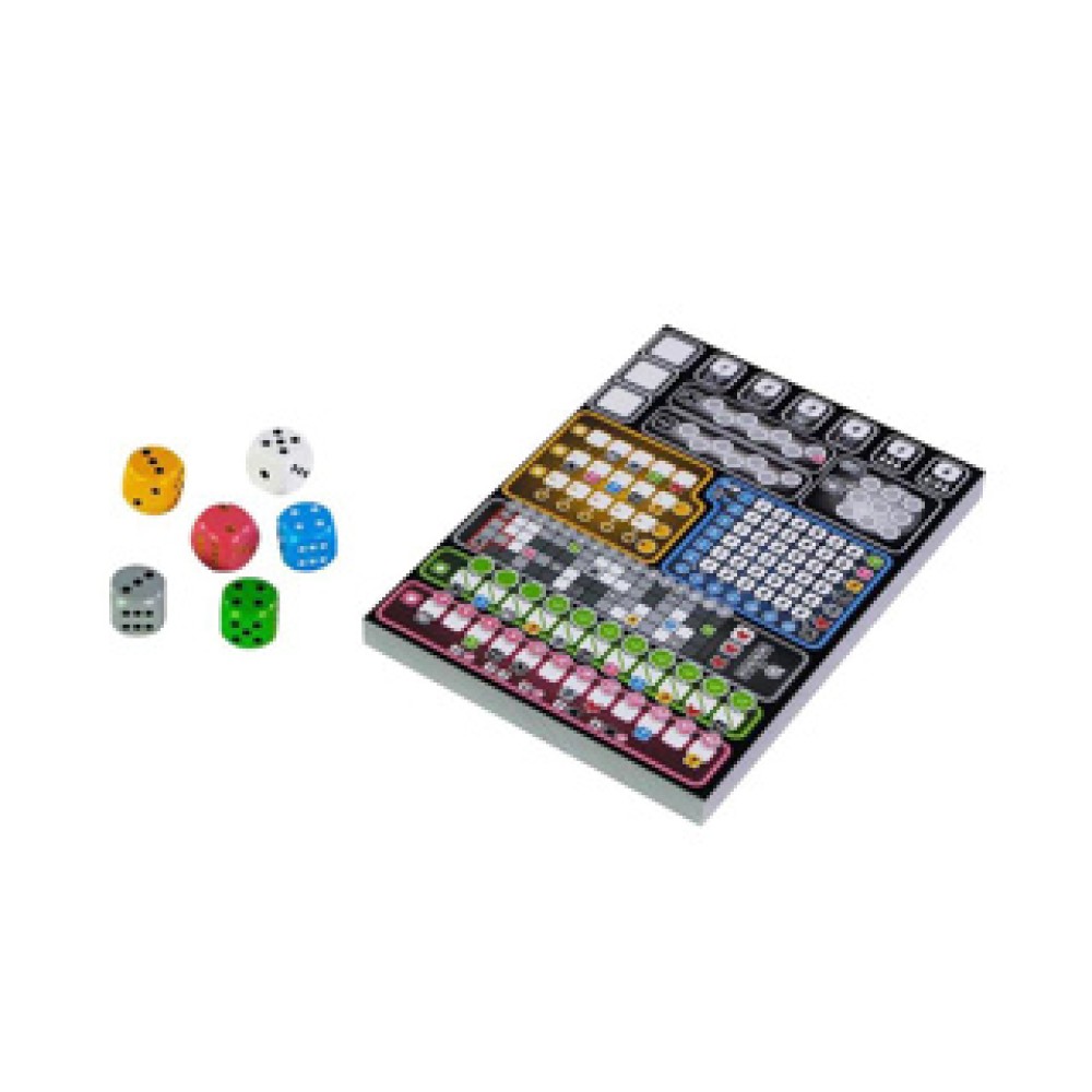 | Materiaal | Kartonnen scorevel, plastic dobbelstenen |