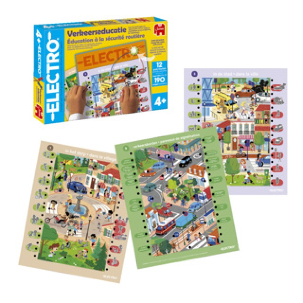 Ontdek de Jumbo Electro Verkeerseducatie, een innovatief educatief speelgoed dat kinderen helpt de basisregels van veilig verkeer te leren. Met een interactief elektronisch systeem verbinden kinderen vragen met de juiste antwoorden door middel van kabels. Zodra een juist antwoord wordt gekozen, gaat er een lampje branden, wat zorgt voor een speelse en stimulerende leerervaring. Dit spel bevordert belangrijke vaardigheden zoals goed kijken, verbanden leggen en onthouden, terwijl kinderen op een leuke manier leren over verkeersveiligheid. Perfect voor jonge verkeersdeelnemers die met plezier hun kennis willen vergroten!