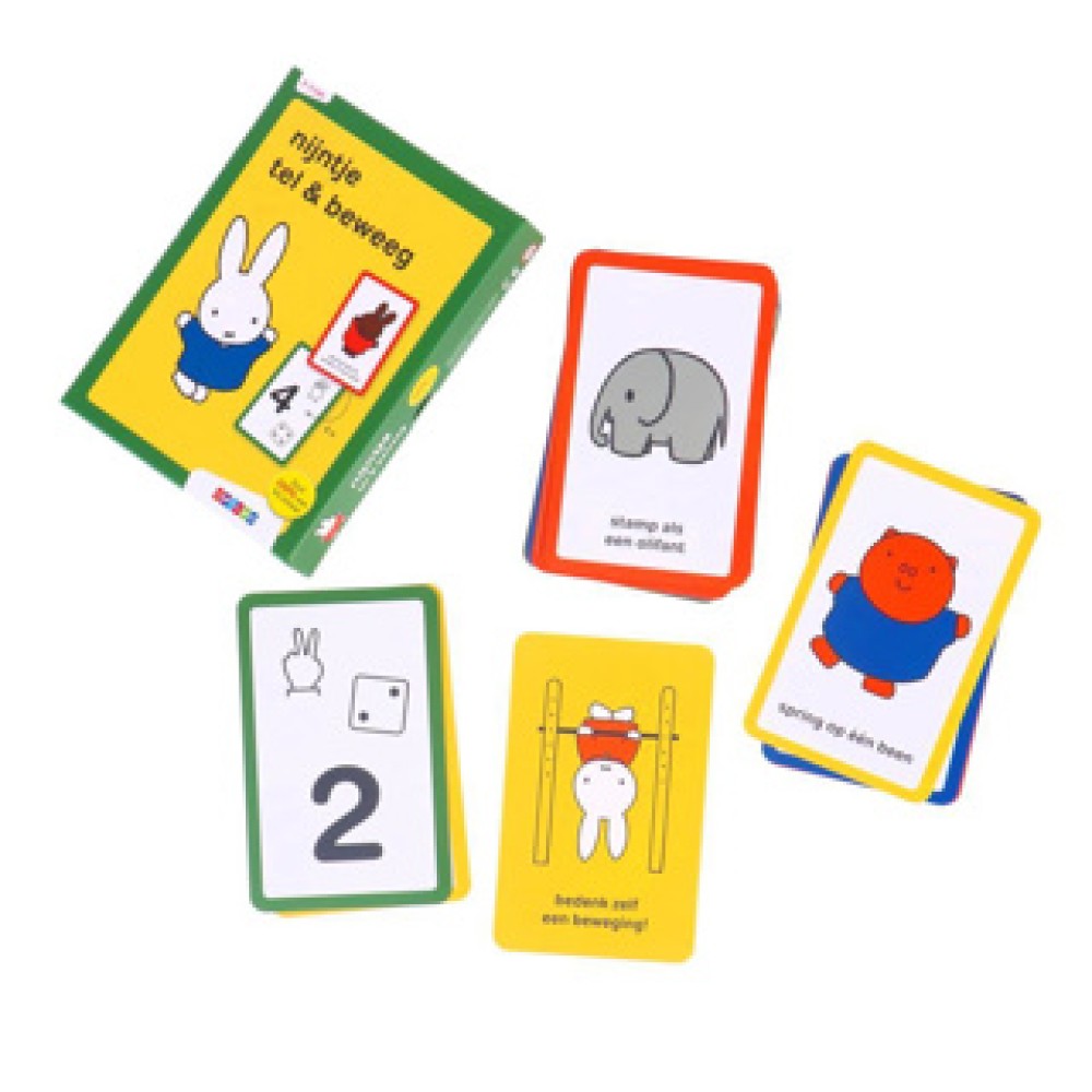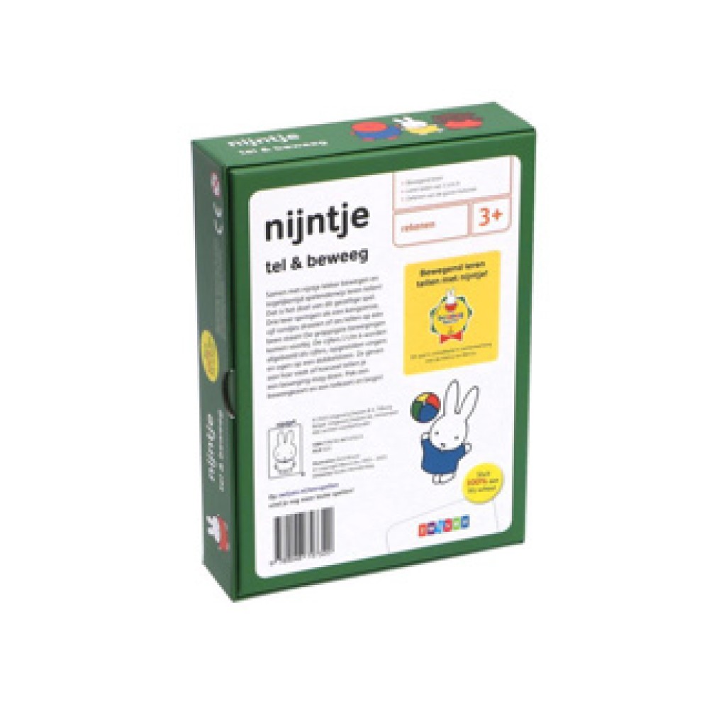 Ontdek Nijntje Tel & Beweeg, een leuk educatief spel voor jonge kinderen dat hen op een speelse manier helpt met tellen en bewegen. Dit pakket bevat een set beweegkaarten en telkaarten die kinderen uitnodigen om actief aan de slag te gaan. Spelenderwijs leren ze tellen terwijl ze zich lichamelijk ontplooien, wat bijdraagt aan hun motorische vaardigheden. Ideaal voor peuters en kleuters die hun tel- en beweegvaardigheden willen ontwikkelen op een vrolijke en interactieve manier. Laat de kleintjes genieten van leren met Nijntje!