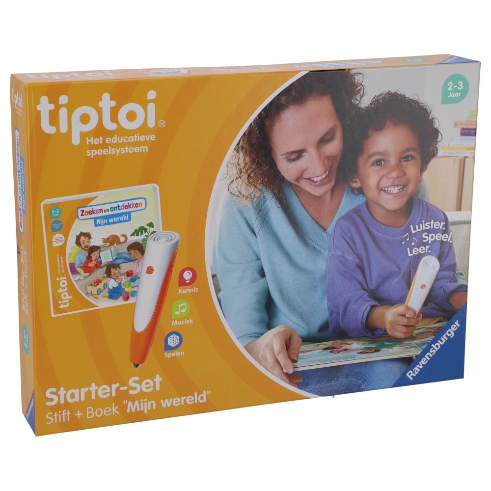 De Ravensburger Tiptoi Starterset Mijn Wereld biedt kinderen vanaf 2 jaar een leuke en interactieve manier om te leren. Met de speciale stift kunnen ze op afbeeldingen en teksten tikken om direct geluiden, verhalen en muziek te horen. Dit maakt leren leuk en boeiend!