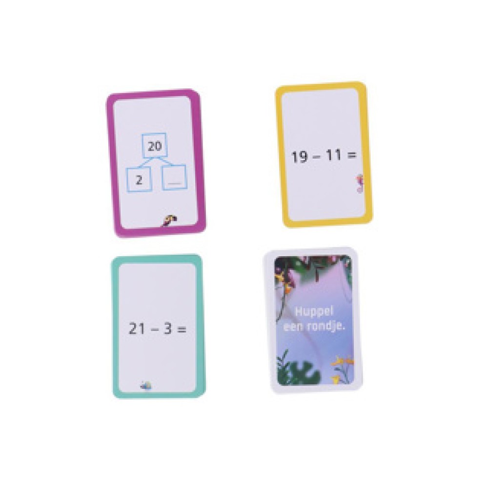 - 72 rekenkaarten om plussommen, minsommen en splitsommen te oefenen.