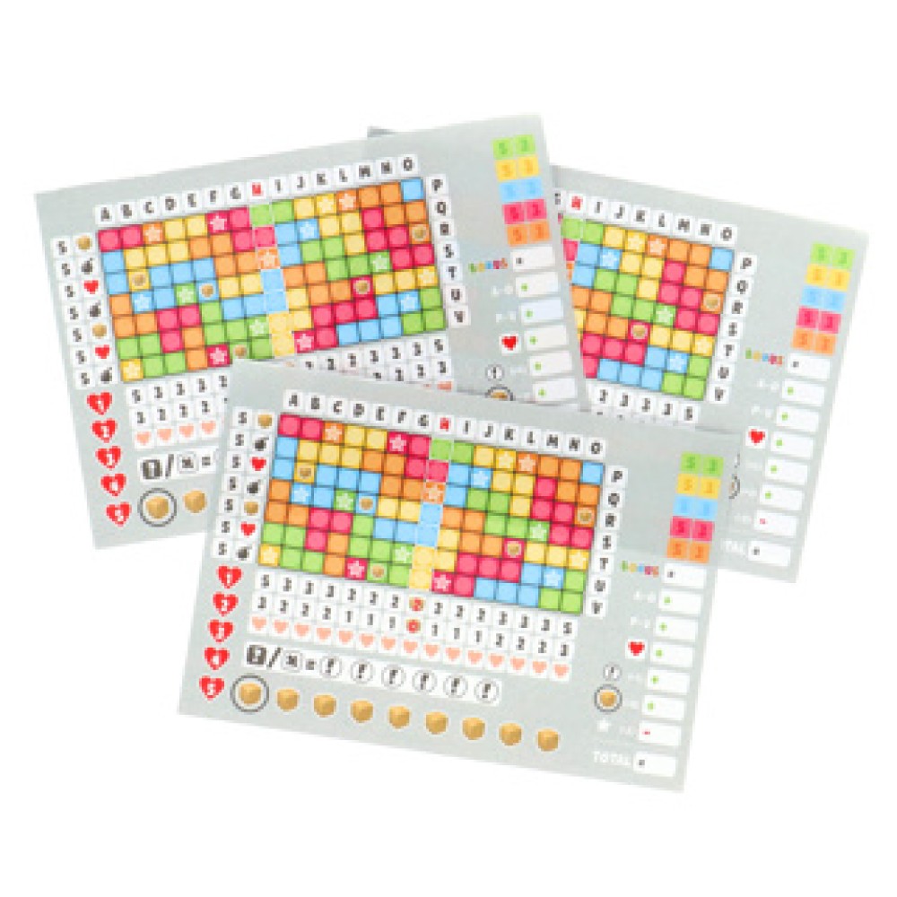 Met het scoreblok kun je eenvoudig bijhouden wie de beste strategieën heeft en wie de meeste punten verzamelt. Dit maakt elk spel nóg spannender en uitdagender!