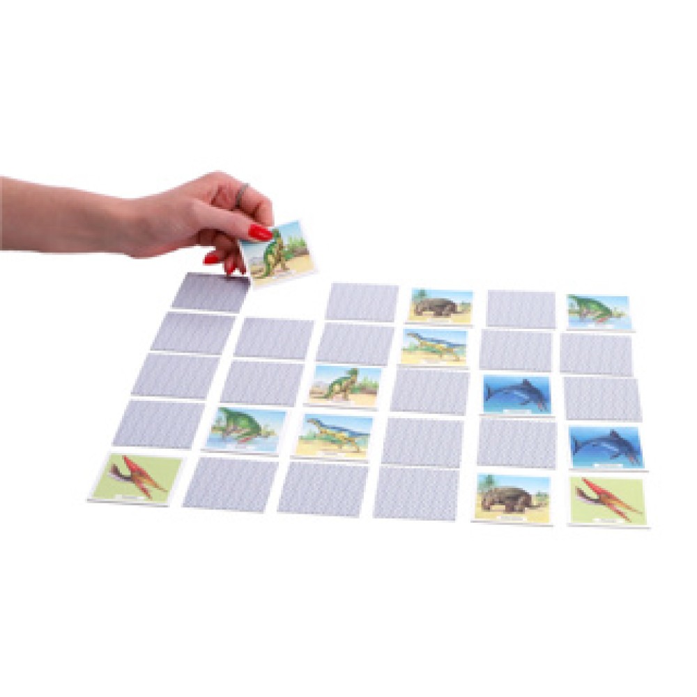 - Bevat 64 stevige kaarten met dino-afbeeldingen