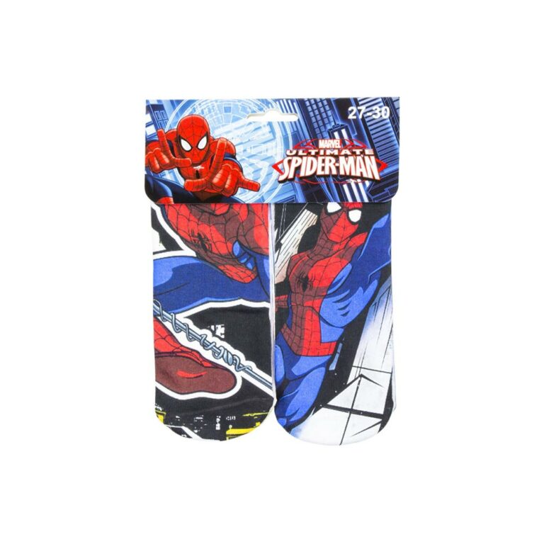 Spiderman Sokken (2 pack) Originele Marvel Spiderman sokken. Verkrijgbaar in verschillende maten Materiaal: 98% polyester. 2% elastaan