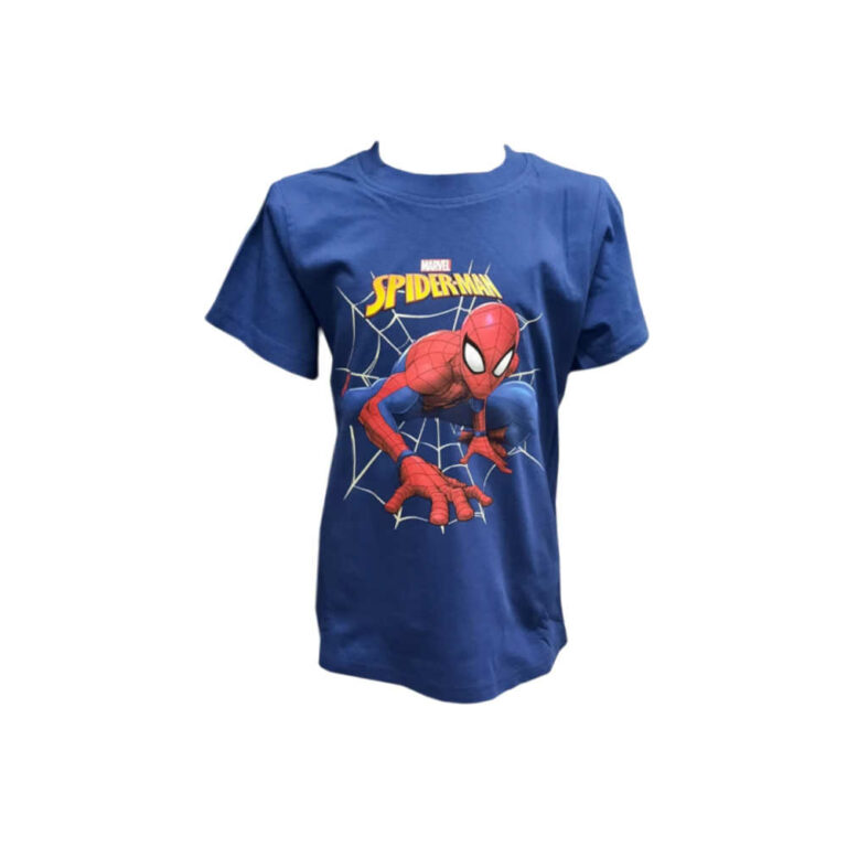 Spiderman T-shirt "Crawler" Laat deze zomer zien dat jij de grootste fan bent fan Marvels Spiderman met dit stoere T-shirt. Op de voorkant staat een stoere afbeelding van Spider-Man in actie. De achterkant is egaal van kleur. Verkrijgbaar in licht- en en donkerblauw in de maten 92 t/m maat 128. Materiaal: 100% katoen