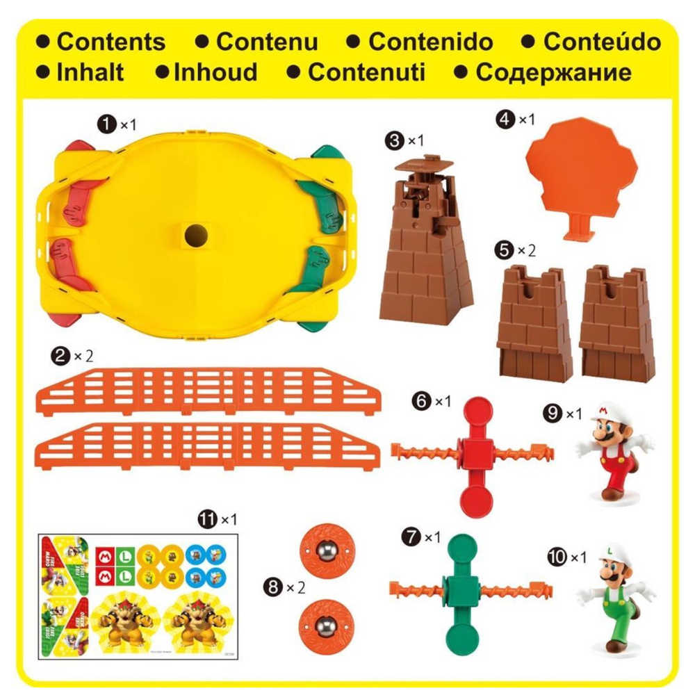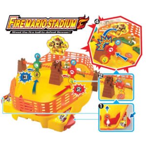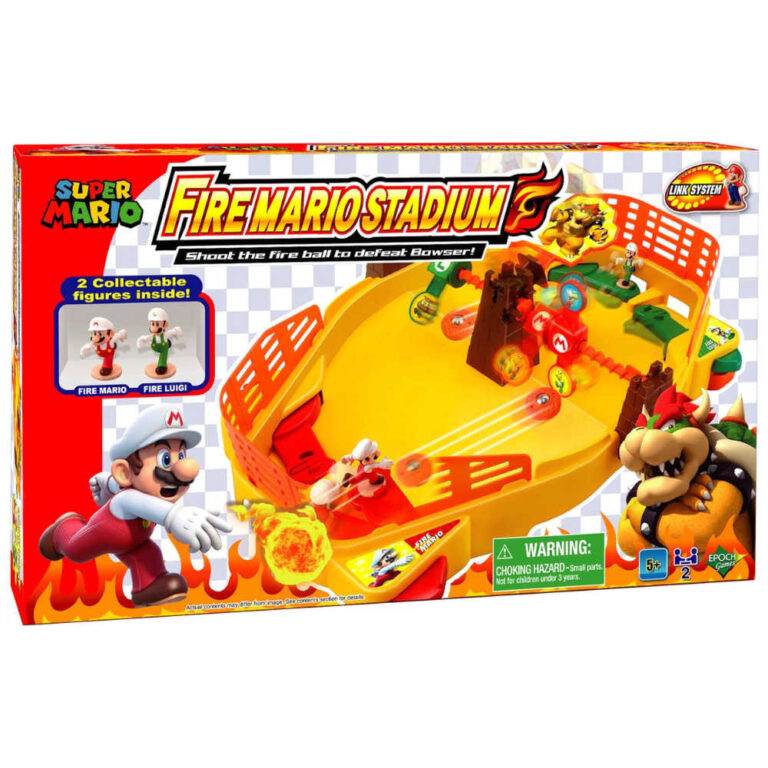 Een leuke flipperspel met Super Mario thema. Gebruikt de flippers om de vuurballen weg te schieten. Mik op jouw figuur om die naar de toren te bewegen. Zit je tegenstander dwars door tegen zijn figuur te schieten en die terug naar start te sturen. De speler die met zijn figuur de toren raakt, laat Bowser vallen en wint het spel! Geschikt voor twee spelers vanaf 5 jaar oud. Batterijen niet nodig.