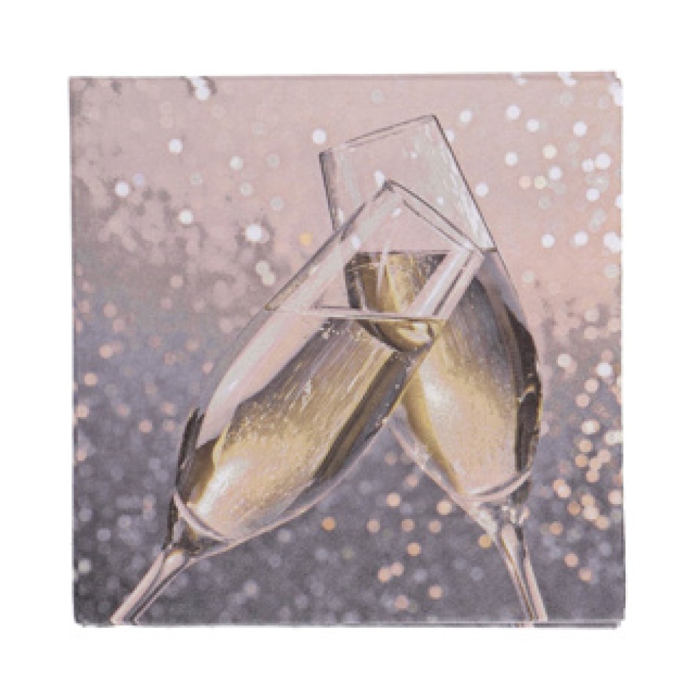 De Servetten Cheers zijn perfect voor al je feestelijke gelegenheden. Met hun vrolijke opdruk van proostende champagneglazen brengen ze direct een feestelijke sfeer. Deze servetten zijn handig en praktisch, ideaal voor bruiloften, verjaardagen en andere speciale momenten.