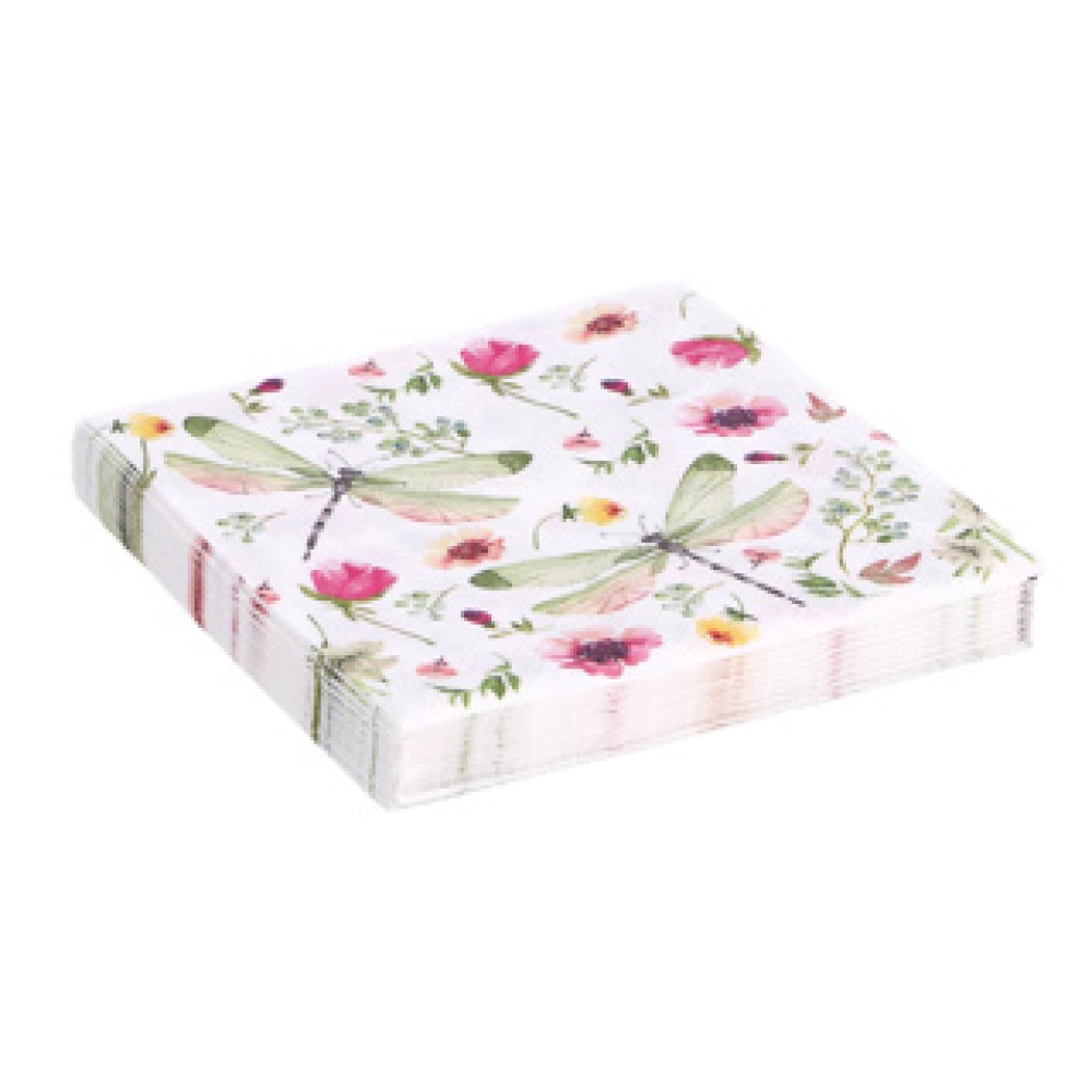 De Servetten Summer Field zijn perfect voor al jouw zomer evenementen. Deze kleurrijke papieren servetten zijn niet alleen functioneel, maar geven ook een vrolijke uitstraling aan elke tafel. Met een prachtige opdruk van bloemen en libelles brengen ze de zomer naar binnen, waar je ook bent.