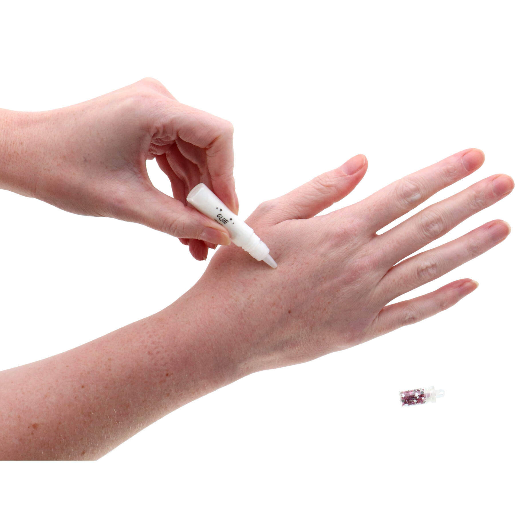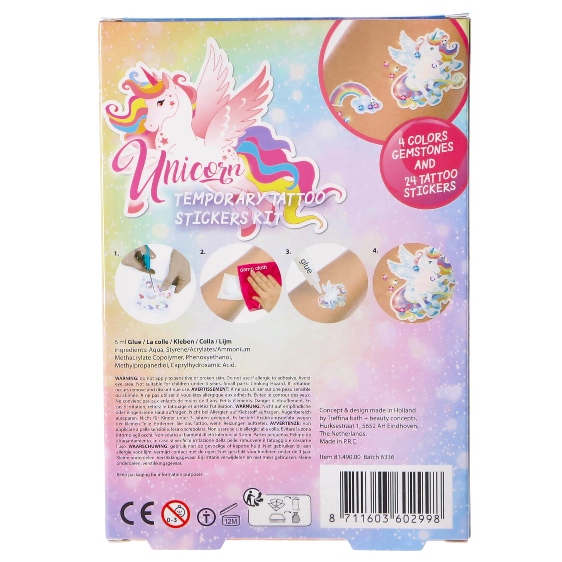 De Casuelle Unicorn Glitter Body Tattoos zijn tijdelijke glittertattoos met leuke steentjes waarmee je jouw eigen tattoo nog mooier kunt maken! De glittertattoos zijn ontworpen in schattige eenhoorn- en regenboogmotieven. Ze zijn gemakkelijk aan te brengen en te verwijderen, wat ze perfect maakt voor kinderen. Bovendien zijn ze gemaakt van veilige en niet-giftige materialen, zodat ouders zich geen zorgen hoeven te maken over de gezondheid en veiligheid van hun kinderen. Laat het glitterplezier beginnen!