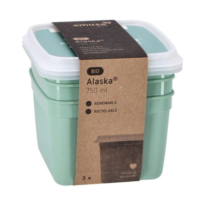 De Alaska 3 Diepvriesdozen zijn ideale oplossingen voor jouw voedselopslag. Deze vierkante dozen van 0,75 liter zijn niet alleen handig, maar ook goed voor het milieu. Ze zijn gemaakt van 70% suikerriet en bieden een ecologisch alternatief voor traditionele plastic dozen.