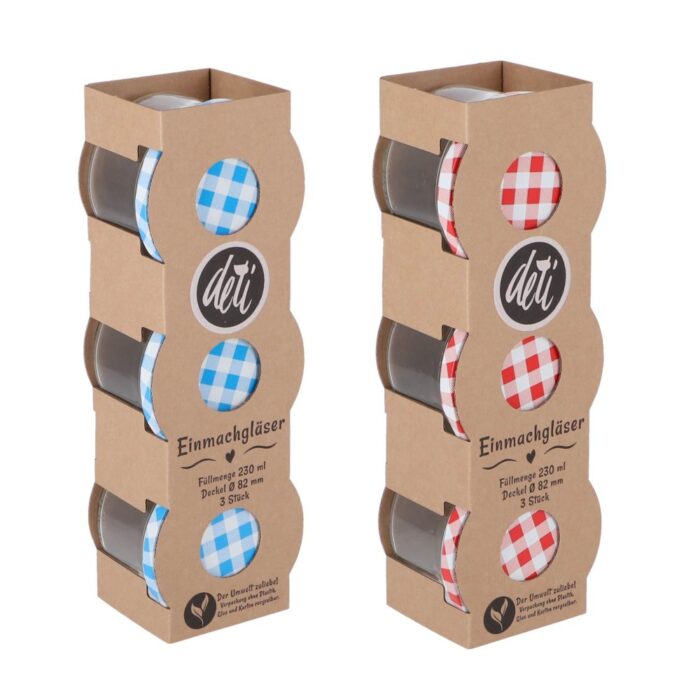 Ontdek de charme van de Jampot set met drie glazen potjes, elk perfect voor het bewaren of inmaken van delicieuze jams en andere conserves. Met hun authentieke blauwe deksels stralen deze potjes een klassieke uitstraling uit, waardoor ze niet alleen functioneel zijn, maar ook een prachtige aanvulling vormen voor je keuken. De ideale keuze voor liefhebbers van ambachtelijke bereidingen, deze jampotjes geven je zelfgemaakte creaties de aandacht die ze verdienen. Voeg een vleugje nostalgie toe aan je voedselopslag met deze stijlvolle en praktische set.