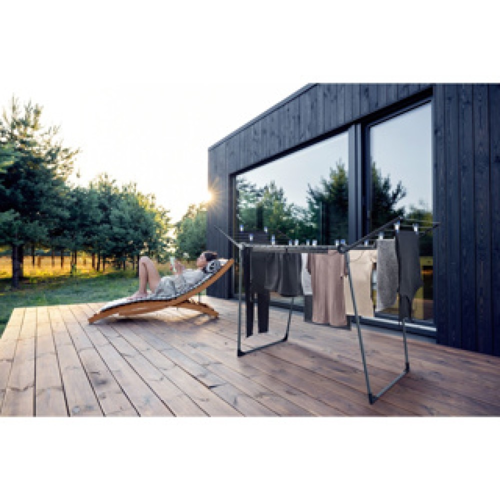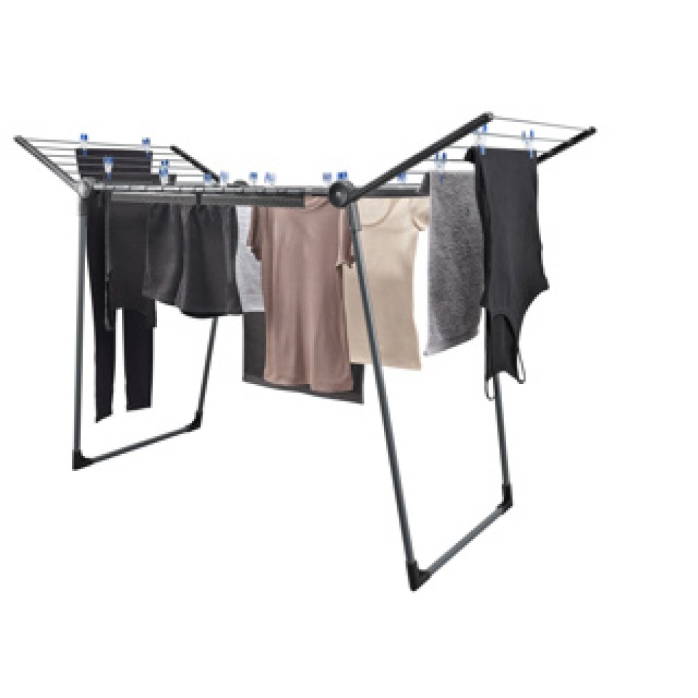 Ontdek het Leifheit droogrek Pegasus in stijlvol zwart, een ideale oplossing voor het efficiënt drogen van uw wasgoed, zowel binnen als buiten. Met een ruime capaciteit biedt dit droogrek voldoende ruimte voor al uw kleding, handdoeken en beddengoed. Het compacte ontwerp zorgt ervoor dat u het gemakkelijk kunt opbergen wanneer het niet in gebruik is, terwijl de moderne uitstraling een elegante toevoeging aan uw interieur of wasruimte biedt. Perfect voor iedereen die waarde hecht aan functionaliteit en design. Geniet van een snelle en eenvoudiger droogervaring met dit veelzijdige droogrek.
