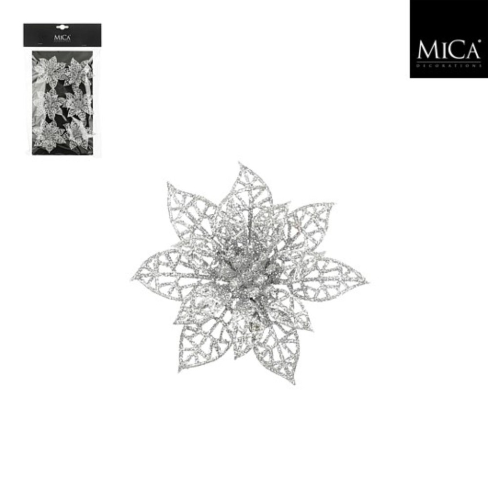 Clip poinsettia zilver 6 stuks – h1xd8cm
