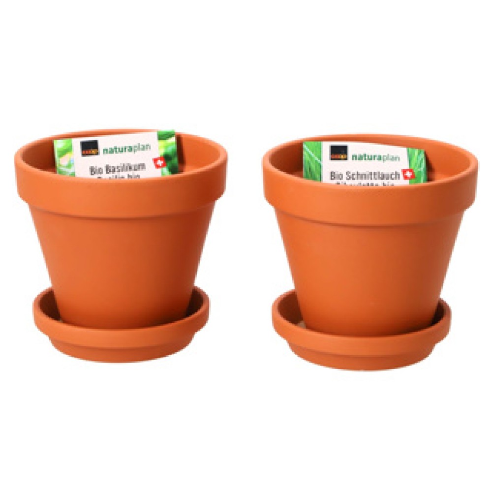 Ontdek het gemak van verse kruiden met onze terracotta potten, compleet met bieslook en basilicum zaden. Deze compacte, stijlvolle potten zijn perfect voor zowel binnen- als buitenshuis en bieden een ideale oplossing voor het kweken van je eigen aromatische ingrediënten. Met hun sfeervolle design voegen ze niet alleen functionaliteit toe, maar ook een vleugje groen aan je keuken of tuin. Perfect voor kruidenliefhebbers en culinaire enthousiastelingen die graag koken met verse, zelfgekweekte ingrediënten. Maak je gerechten extra speciaal met de frisse smaak van zelfgekweekte bieslook en basilicum!